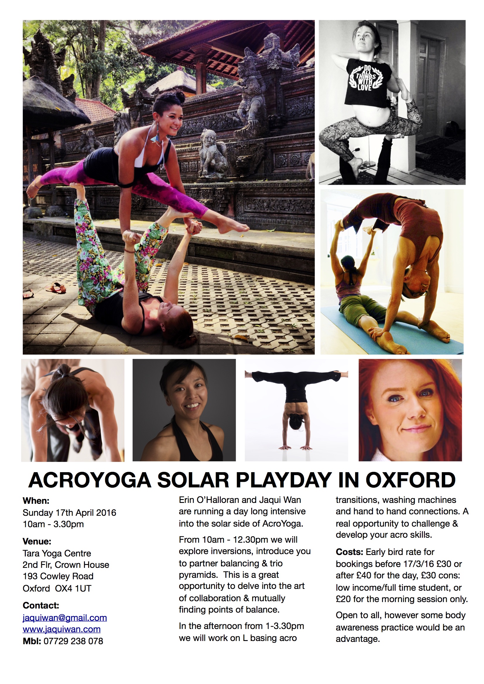 - AcroYoga Solar pre reqs: Saturday 11th March 2017, 2-5.30pm