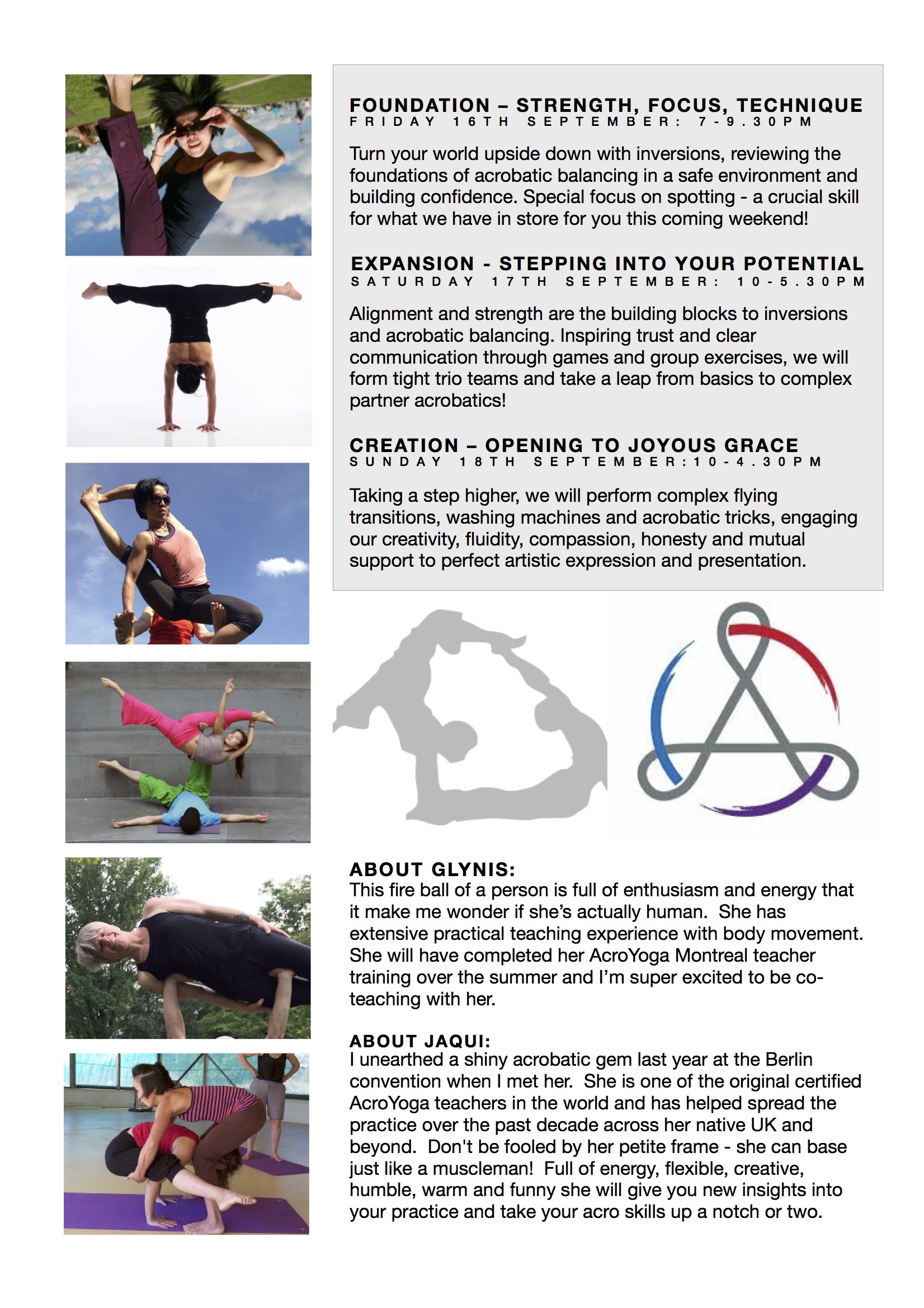 Ideal for anyone interested or attending the AcroYoga Solar Immersion in London from Saturday 25th to Wednesday 29th March 2017.